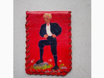 Plånbok med dekorativ målning man i Folkdräkt från Åhls socken.