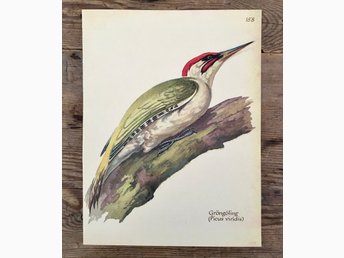 Äldre naturbild Gröngöling Fågel Ornitologi Inredning Skolplansch