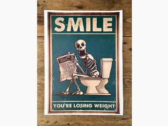 Poster plansch tavla Smile You're Losing Weight Skelett Halloween Inredning