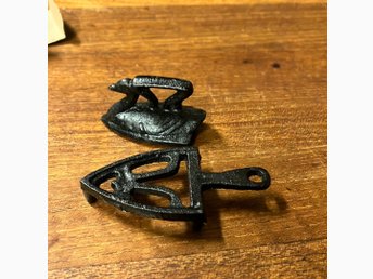 Gjutjärn Miniatyr Strykjärn och Strykjärnsunderlägg
