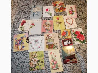 RETRO - hög med äldre amerikanska uppvaktningskort,skrivna DEKORERA MED