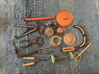 Parti diverse mestadels äldre kuriosa bl.a tänger och relief på Kungen