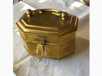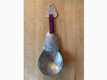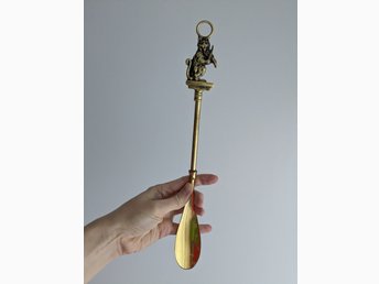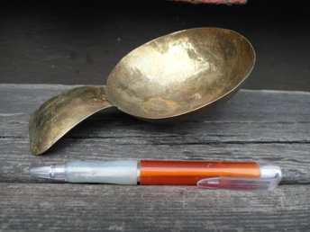 handhamrad skopa/ slev i mässing med ett kort böjd handtag