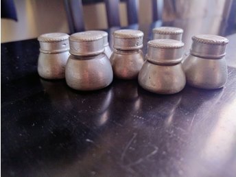 7 st krutburkar, krutdosor, oljedosor, smörjkoppar i tenn, från 1800 tal