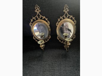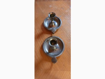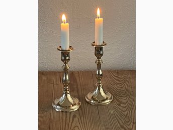 2 mässing ljusstakar + lampfot Made in England Vintage guldfärgat mässing