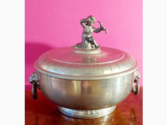 Centerpiece Svenskt Tenn Nordiska JuvelAB med lock kerub Amor lejon Supervacker