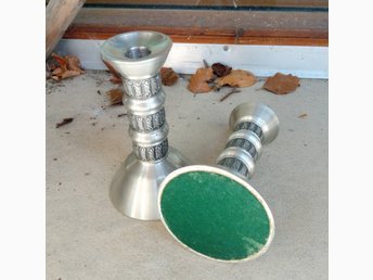 Två vackra tennljusstakar av Stein Nilsen, Haugrud