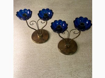 Ljusstake 2st Mässing Kronljus 15cm Vintage
