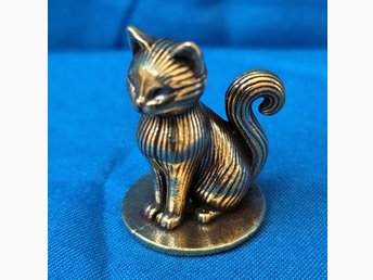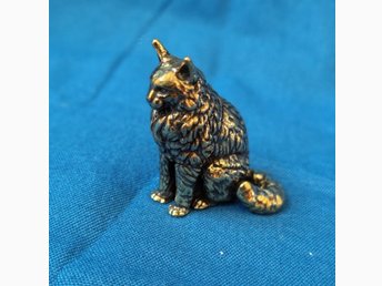 Katt långhårig typ ragdoll norsk skogskatt I mässing figur prydnad dekoration