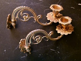 Små Mässing 3st Ljusstake Kronljus Vintage
