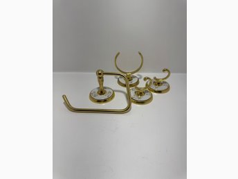 Vintageset i mässing och porslin – 4 delar, blommönster, 1970–1990-tal