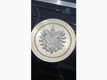 Handarbetat tennfat med Österrikes riksvapen