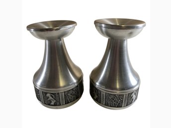 2 st SP Bollnäs Ljusstakar Tenn Dekor Graverad Retro