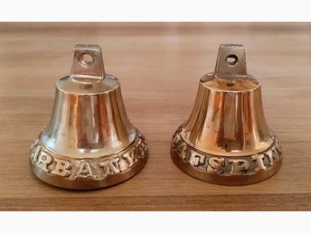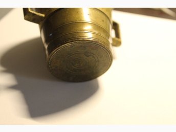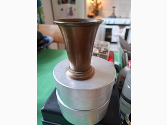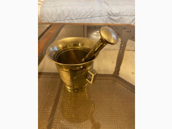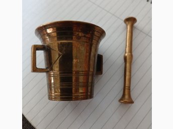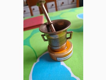 Gammal Mortel i mässing med Stöt TH Vaasa Suomi Finland 8 cm hög Stöt 14 cm