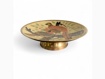 Mässing fat på fot motiv av fåglar Vintage Retro