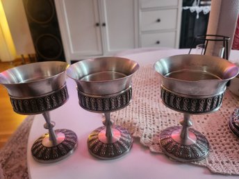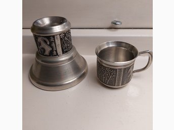Tenn Glas Muggar 3st Svensk Tenn Gränna Glasmuggar Stämplad Vintage Design Retro