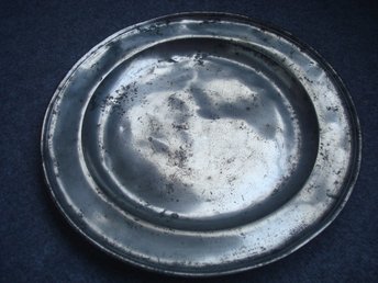 ANTIK TENN STÄMPLAT G I A TENNFAT STORT TUNGT 16-17-1800 TAL ?