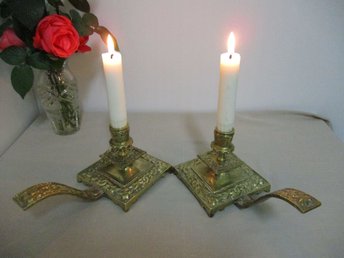 Ett Par Mariarosen Skultuna Ljusstakar Mässing ***