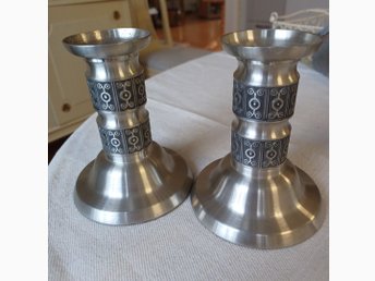 2 st Tenn Ljusstakar Koppar & Tennsmide