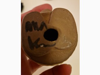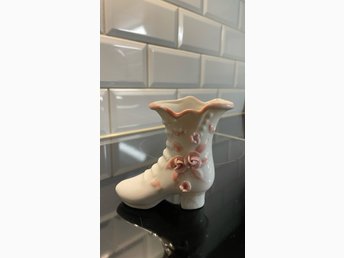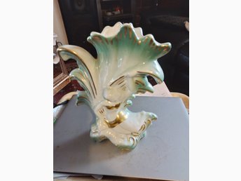 ÄLDRE DELFIN VAS I PORSLIN /VINTAGE SIGNERAD LG. MYCKET OVANLIG FORM.