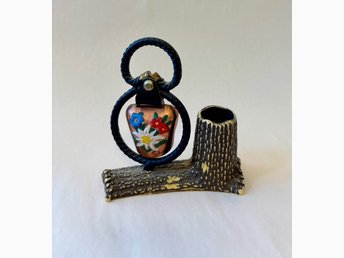 Schweizisk vintage souvenir i form av en klocka med en hållare för tandpetare