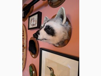Tvättbjörn, Procyon lotor, faux taxidermi, skolplansch, uppstoppad, kuriosa