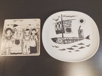 Vintage Karlskrona Birgit Persson Fat och Sally Gregory Chesper Bricka
