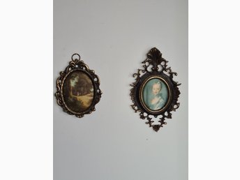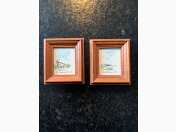 2 små tavlor konstnär Eva Pettersson träram 7x8 cm