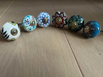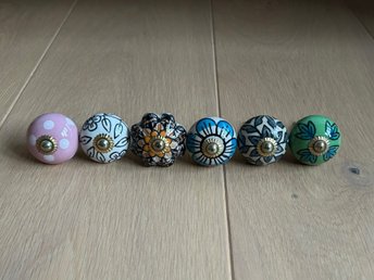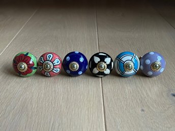 Keramiska knoppar 6-pack – handmålade dragknoppar till skåp & byrå