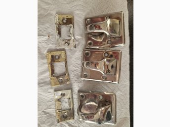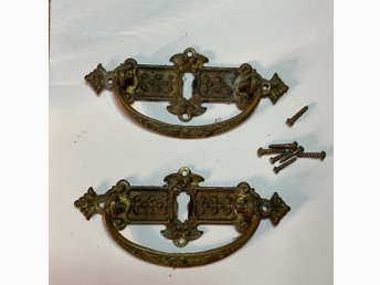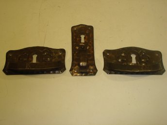 Antika? Beslag nyckelplåtar m handtag 2 st samt 7 original skruv LÄS