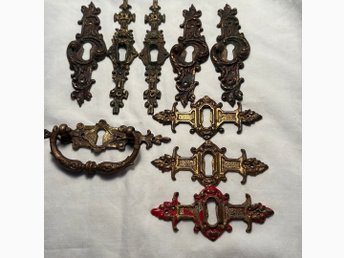 Antika Beslag 9 st mässing (gjutjärn)