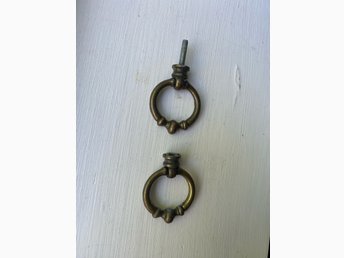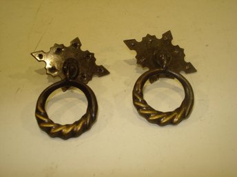 Två lådhandtag i förmodad mässing