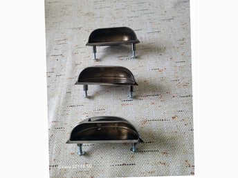 Tre bruna beslag, handtag i till skrivbord mm
