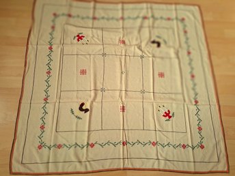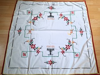 Retro! Julduk bordsduk viskos broderad handbroderad på beige botten julljus