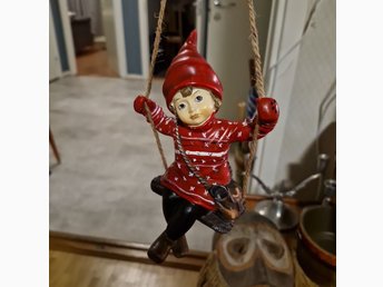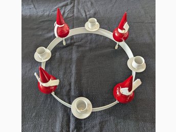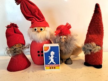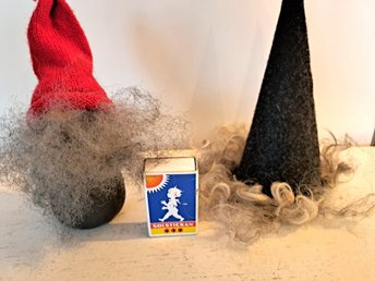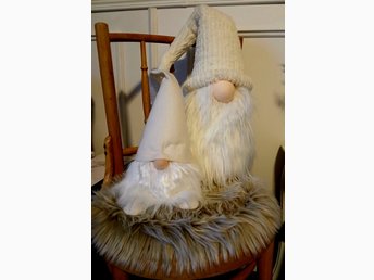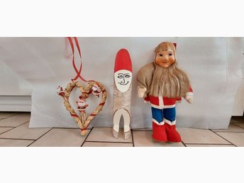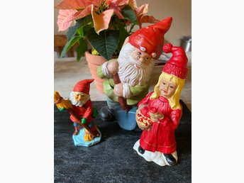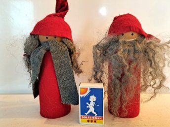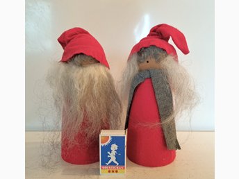 2 tomtar i trä & filt / papp/tovat cm grått skägg svenskt hantverk röd mössa