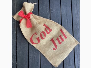 JULKLAPPS SÄCK text GOD JUL TOMTESÄCK RÖTT BAND KLASSISK JUTE