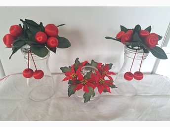 Retro! 3 stora siden ljusmanschetter julstjärnor körsbär