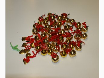 Jul massor av guldfärgade kulor, äpplen och några hjärtan att hänga i granen