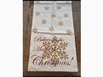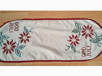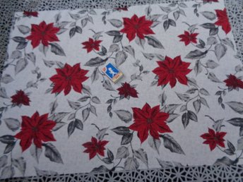 Retro! Hill? Julduk med tryck löpare julstärnor julblommor röd kant 34 x 110
