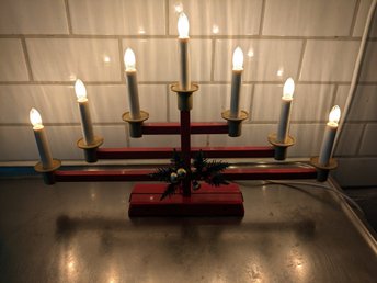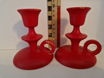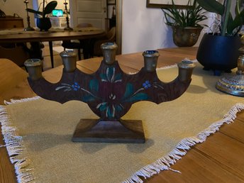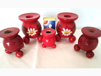 Retro! 5 st röda kulljusstakar trä målade allmoge dalamålning kurbits hantverk