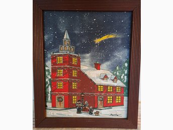 Jultavla stor vacker & stämningsfull tavla med ram tryck snöflingor vintermotiv