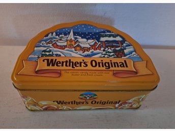 Plåtburk till jul med vackert julmotiv från Werthers kyrka snö vinterlandskap