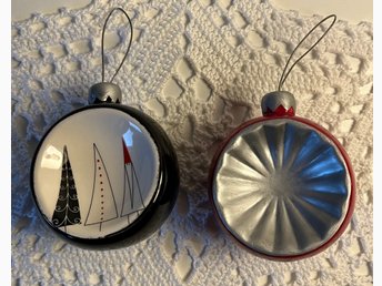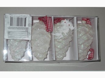 Vita Glittriga Grankottar Röd rutiga tyg band 4st Glittrande Kottar Julpynt JUL