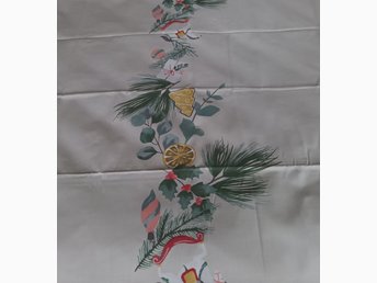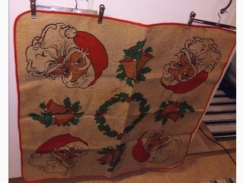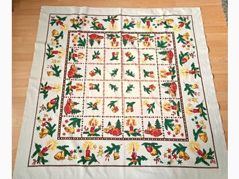 Retro! Stor tryckt Julduk bordsduk 40-50 tal ljus klockor Dalsjöfors Almedahls?