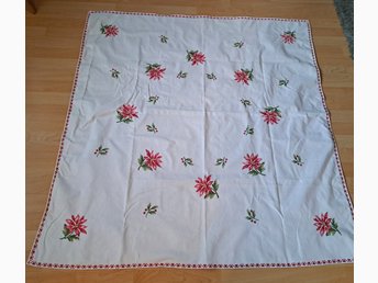 Retro! stor Julduk 122x122 cm handbroderad broderade julstjärnor på vit botten