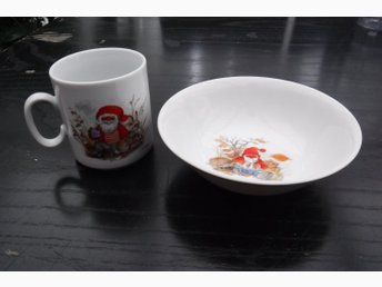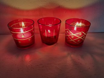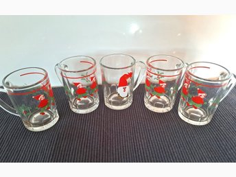 Div. glas saker 5 glöggmuggar i glas med tomtemotiv 2 ljuslyktor