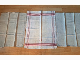 Retro! 3 linnehanddukar röda ränder jul ljusgrå initialer hantverk Axlings Linne