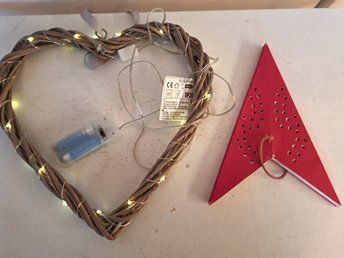 Hjärtformad ledbelysning ljusslinga med batteri & röd pappstjärna fönsterstjärna