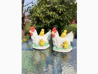 4 fina retro äggkoppar höna samt tupp saltkar , påsk