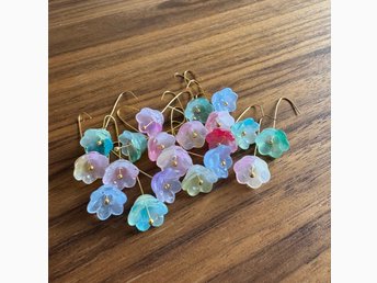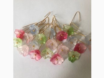 Glasblommor 20st. Påskrispynt. Dekoration mm. Hänge i guldfärg. Fin glansfärg.